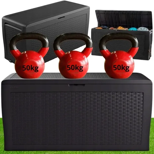 Dzięki zintegrowanym uchwytom i rolkom, skrzynię możesz swobodnie przenosić w dowolne miejsce. Dodatkowo, możliwość zamknięcia na kłódkę zapewni bezpieczeństwo przechowywanych w niej rzeczy.