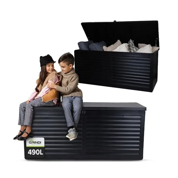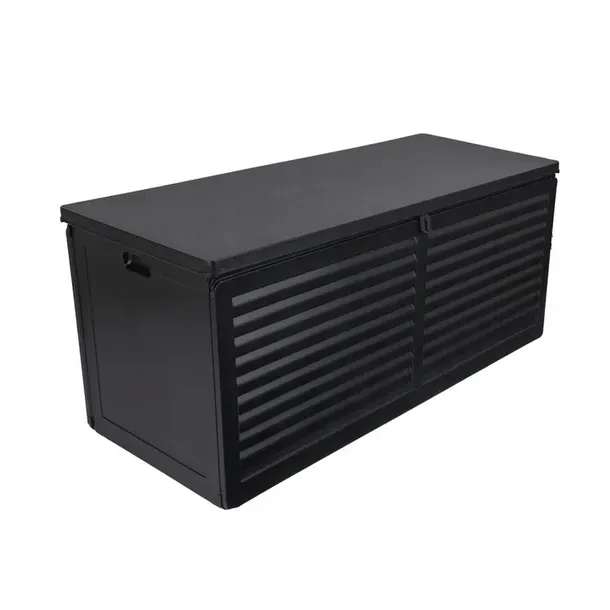 Elegancki, czarny kolor skrzyni pasuje do różnych aranżacji ogrodowych i tarasowych. Możesz wykorzystać ją do przechowywania rzeczy w ogrodzie, na tarasie, balkonie, a nawet przy basenie, zapewniając porządek i estetyczny wygląd przestrzeni.